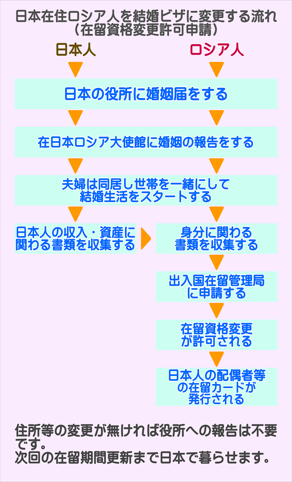 在日ロシア人と結婚し在留資格を「日本人の配偶者等」に変更する流れ
