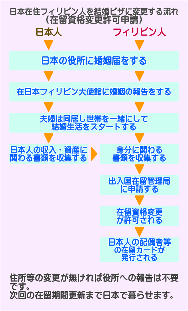 在日フィリピン人と結婚し在留資格を「日本人の配偶者等」に変更する流れ