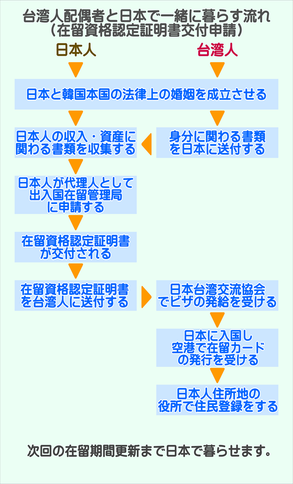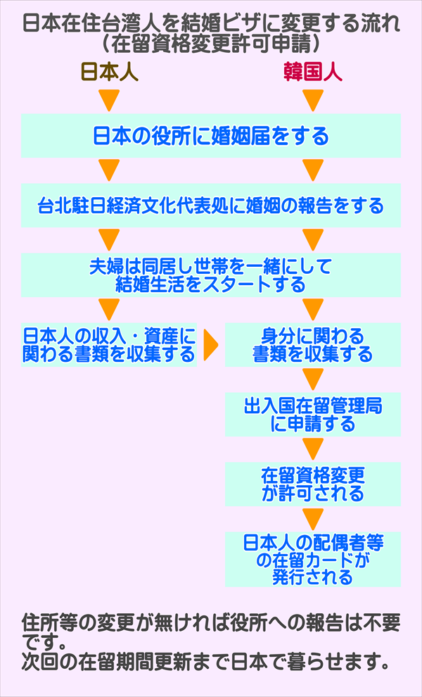 在日台湾人と結婚し在留資格を「日本人の配偶者等」に変更する流れ