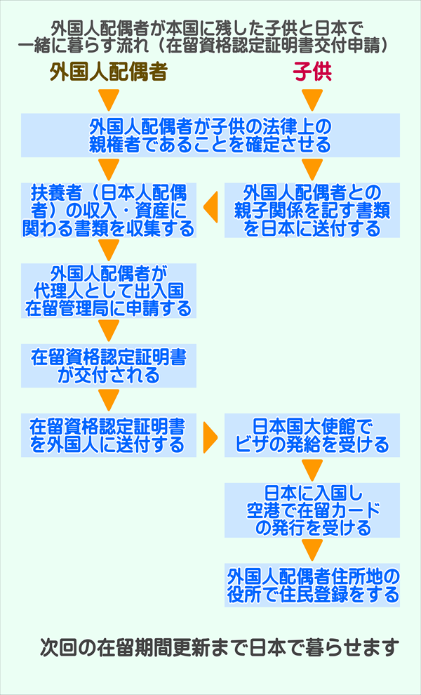 - 未成年で未婚であり、外国人配偶者に扶養する権利が必須。